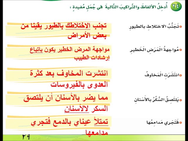 ادخل الالفاظ والتراكيب التالية في جمل مفيدة. شاهد العصافير امها قادمة بالطعام فبرزت من عشها. الحياة في المملكة العربية السعودية هي حياة حافلة بالخير. حل سؤال من كتاب النشاط لغتي الجميلة للصف الخامس الابتدائي الفصل الدراسي الاول اضع الالفاظ والتراكيب التاليه في جمله مفيده. ادخل الالفاظ والتراكيب التالية في جمل مفيدة حام حول الروض بنادق الصيادين كارثة على الحياة البرية.