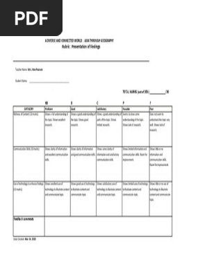 Asia Through Geography Rubric Rubric Academic Communication