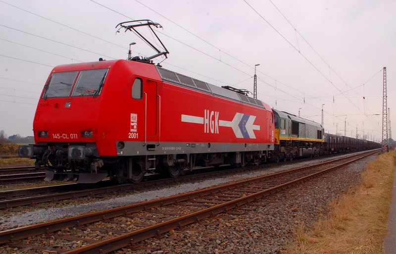 Da Warten Die Hgk Loks 145 Cl11 Und Die De 63 Mit Einem Rungenwagenzug Nach Frankreich Bahnbilder De